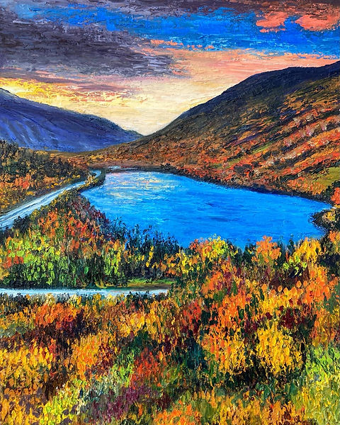 "Sunset Lake in October" 30 x 15 in, Oil on Canvas